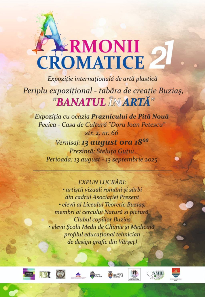 Continuă periplul expozițional BANATUL ÎN ARTĂ în cadrul expoziției internaționale ARMONII CROMATICE 21 LA PECICA-J.ARAD ce va avea loc cu ocazia PRAZNICULUi DE PITĂ NOUĂ, vernisajul va avea loc pe data de 13 august 2025 ora 18,00 la Casa de Cultură Doru Ioan Petescu -Pecica, vă așteptăm cu drag să vă alăturați evenimentului artistic 👏🎨💞🌻🌺